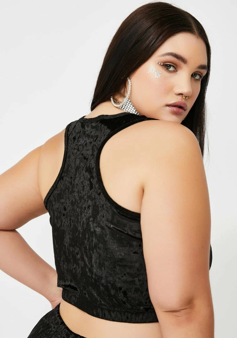 gotcha lookinâ like the clap back queen, sis! Youâre forever unbothered by the basics in this tank crop top that has a supa soft velour material, scoop neckline, racerback design Nâ sikk reflective âTHOTâ graphic on the front.