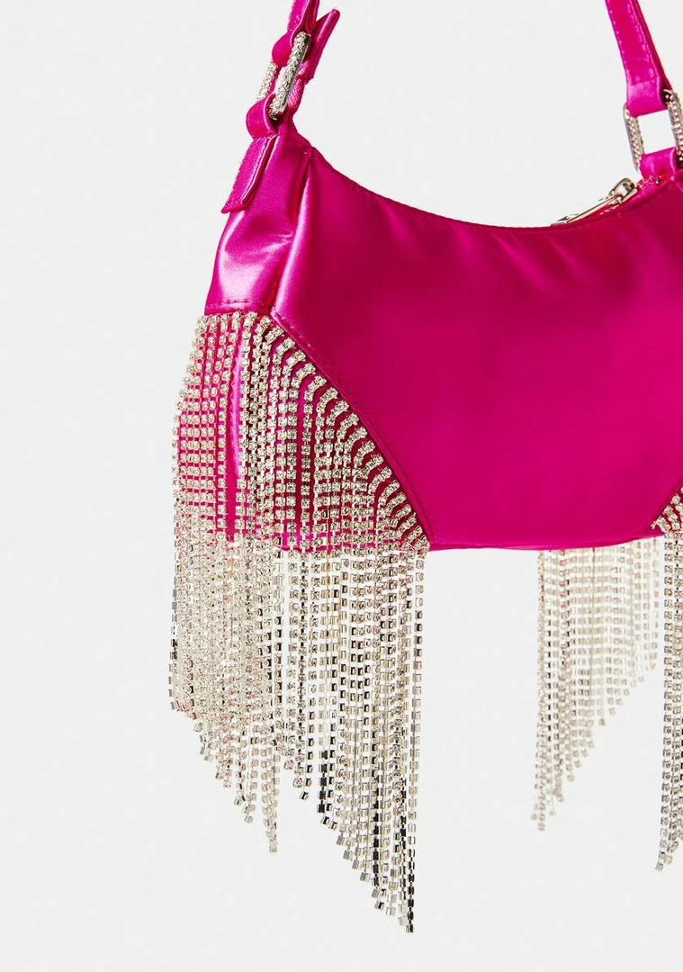 cuz the only sign u need is a dolla sign, bb! Itz all about the benjamins with this money makin baguette shoulder bag that has a smooth vegan leather construction, blinginâ rhinestone fringe, and a top zip closure.