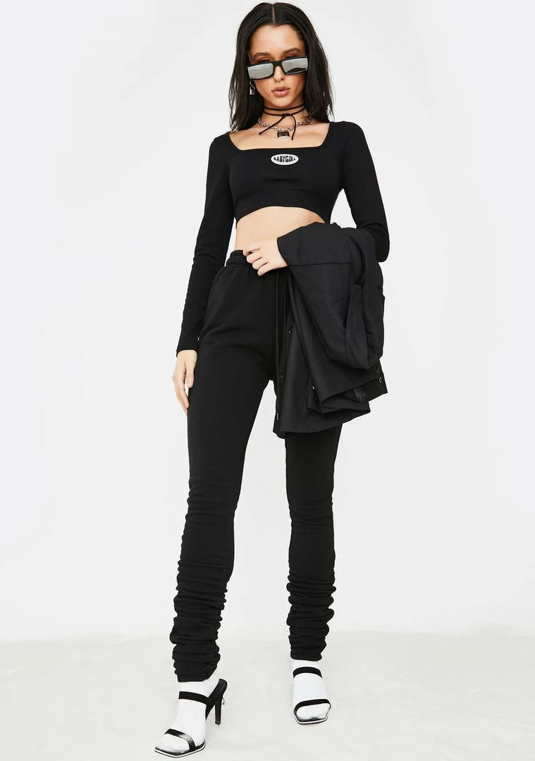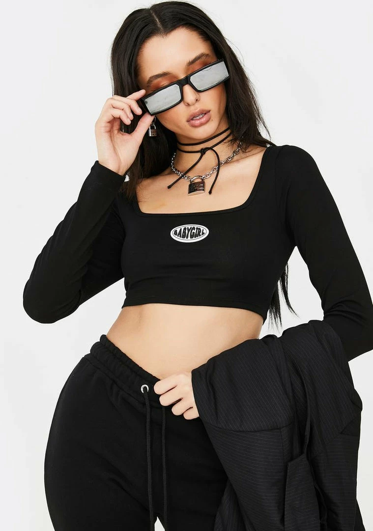 âGoogle me, babeâ. Youâre THAT betch in this long sleeve crop top that has a square neckline, rubber logo âBabygirlâ on the front, Nâ supa slim fit.