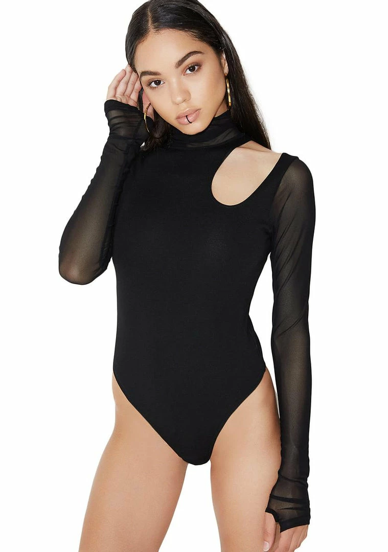 throw it right on back, babe…this sikk bodysuit has a stretchy fit, sheer mesh contrasts, cut-out detail, thong back finish and bikini snap closure.