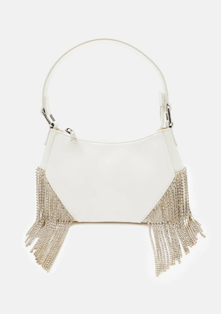 cuz the only sign u need is a dolla sign, bb! Itz all about the benjamins with this money makin baguette shoulder bag that has a smooth vegan leather construction, blinginâ rhinestone fringe, and a top zip closure.