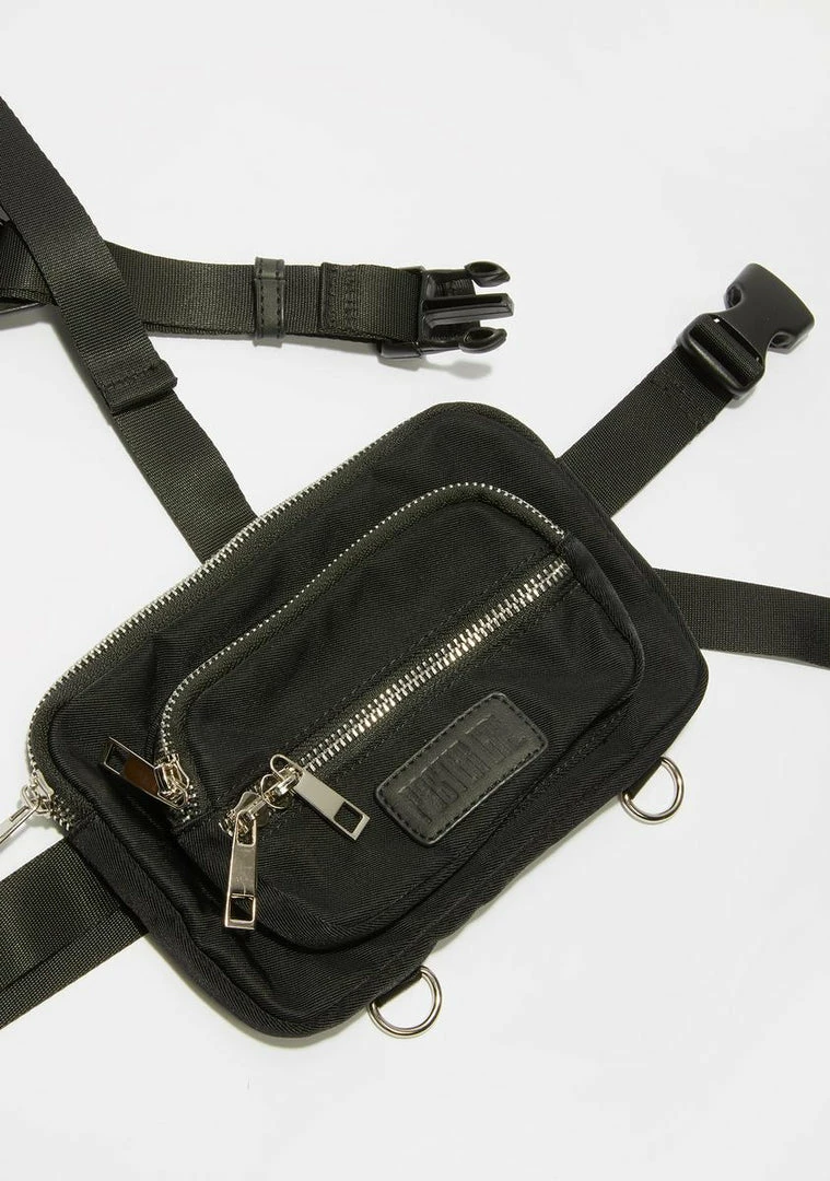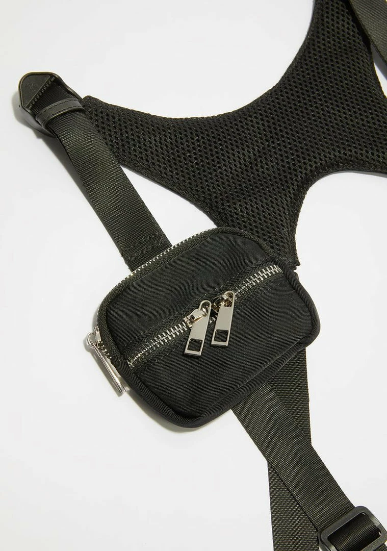 because you know how to bring it. This harness bag set buckles around the chest and right thigh and comes with three detachable utility zipper pouches.