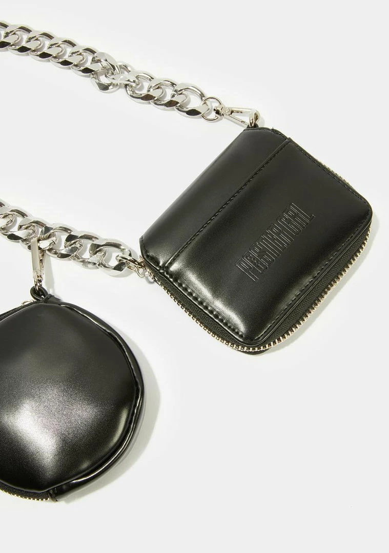 cuz youâve got what it takes to make it to the top. This versatile wallet bag has dual detachable vegan leather pouches and a chain link strap with a clasp closure.