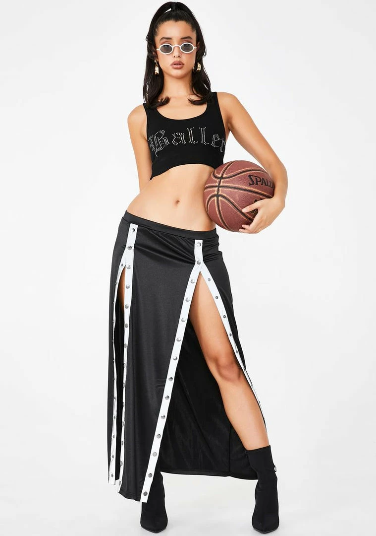 roll call! Tell âem Simon Says âPay Meâ in this forever flossy tank crop top that has a scoop neckline, blinginâ rhinestone BALLER script Nâ is ribbed all ova for a snug fit.