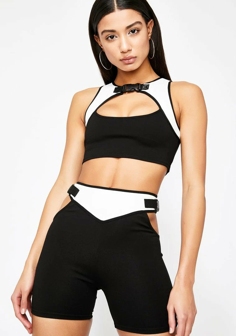 will have âem puttinâ respect on ya check. You got expensive habits in these poppinâ biker shorts that have a high waist, side buckle details Nâ a slim fit to have ya with the wininâ team.