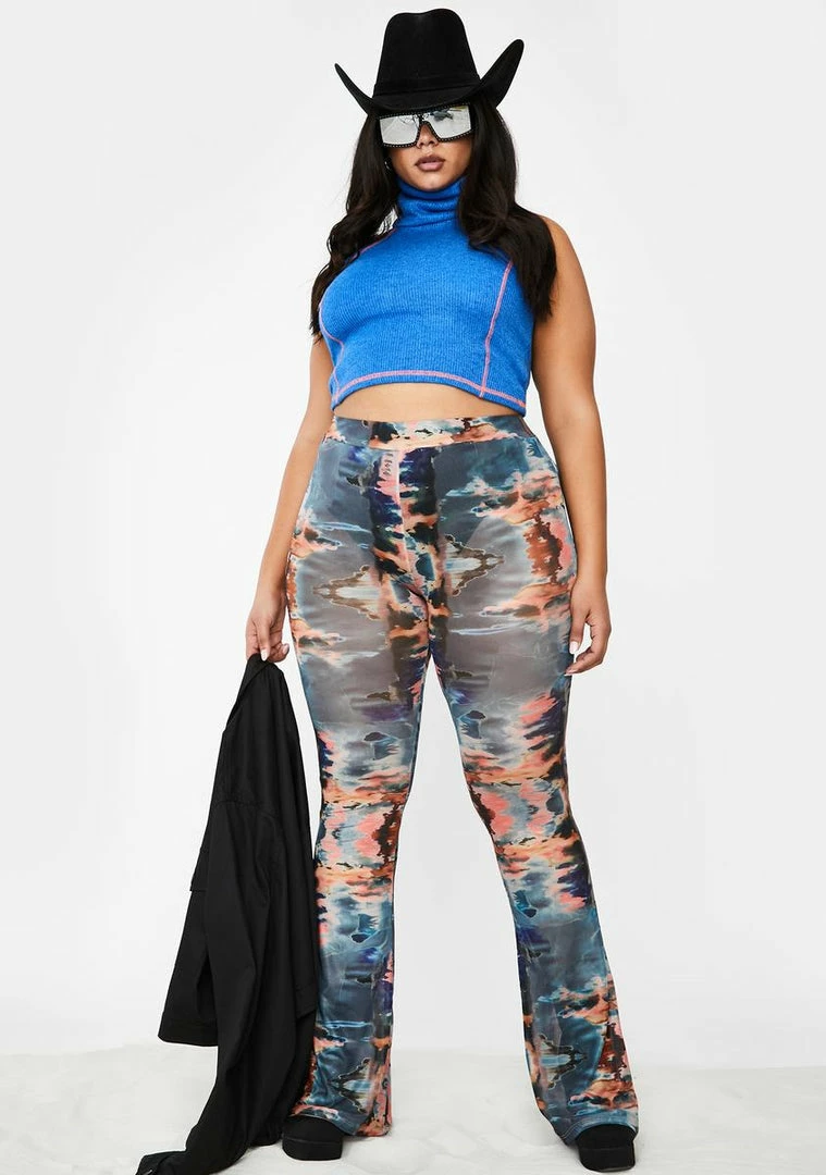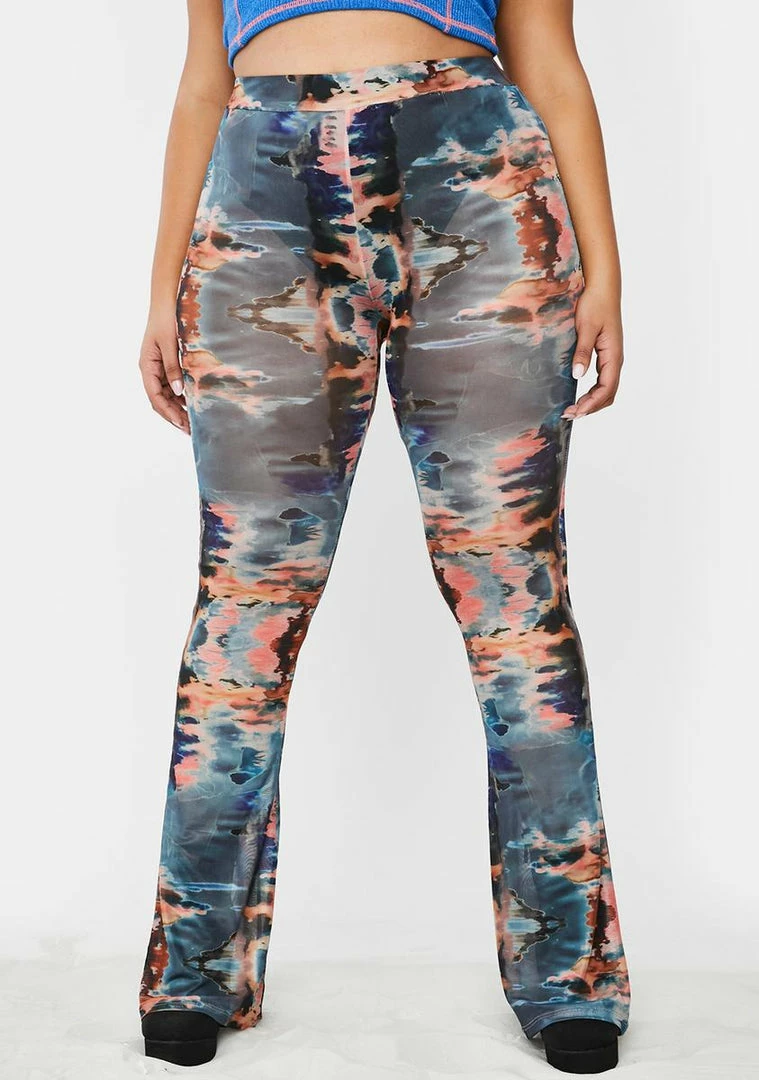 will have ya lookinâ down on the basic betches! You need all the leg room while you sip your champagne in these high waist pants that have a supa stretchy Nâ sheer mesh material, sikk tie dye watercolor print all ova Nâ slim fit.