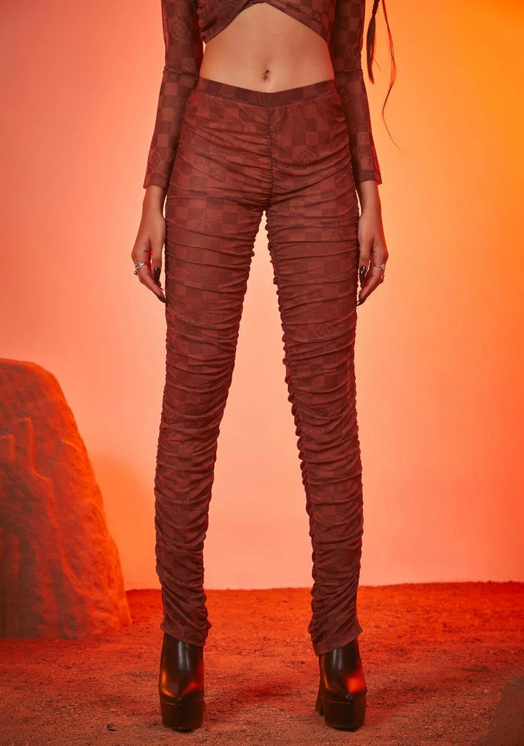 cuz you are a millionaire in training. These ruched leggings have a skinny fit and a checkered print all over.