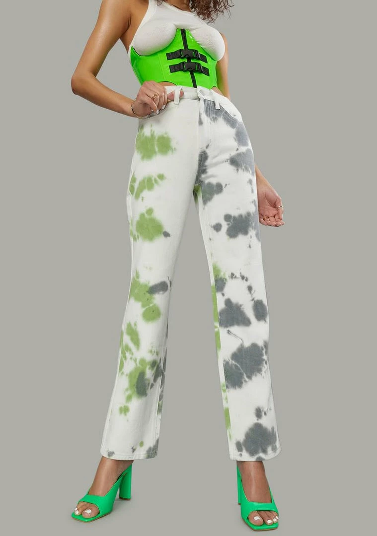 cuz you add a pop of color to your life. These jeans are high waisted with a tie dye print.