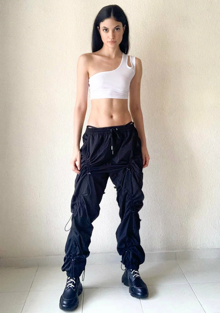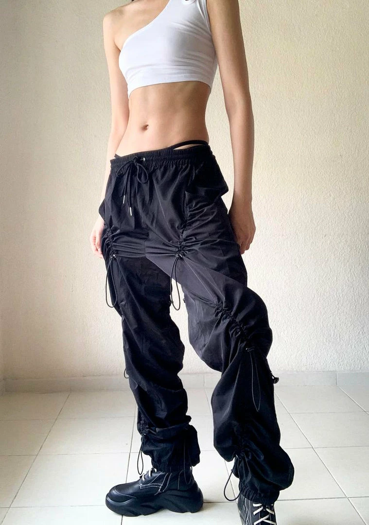 cuz no one knows how to play a man like you, boo. Set the standard in these bad bish parachute joggers that are supa lightweight, have ruched drawstrings all ova and an adjustable tie waistband.