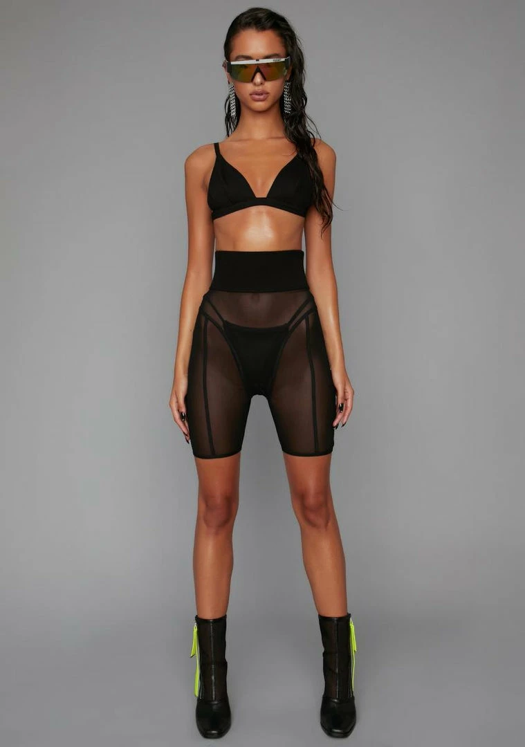 because you’re on a whole ‘nother level, babe. These maxed out biker shorts have a sheer mesh construction, contrast ribbing, and an ultra high waisted fit with a side zip closure.