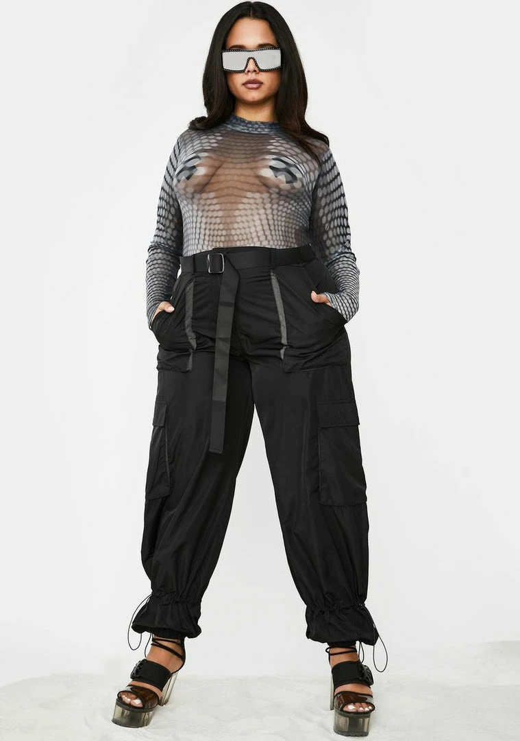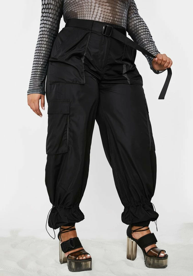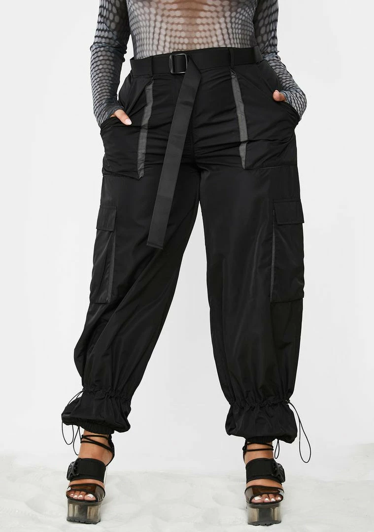 got âem like, âis she off the grid for good??â Take a digital detox in these talk 2 U never cargo joggers that have chunky pockets, adjustable drawstring cuffs and comes with a bad bish adjustable utility belt so they get the message loud Nâ clear.