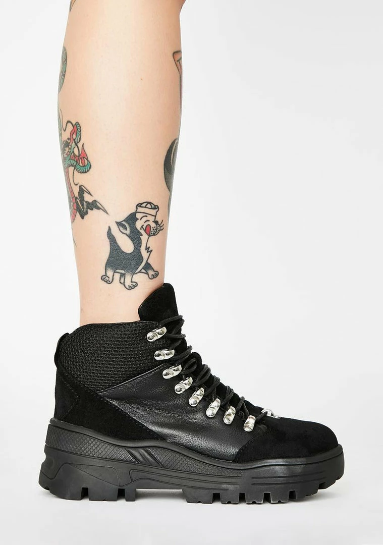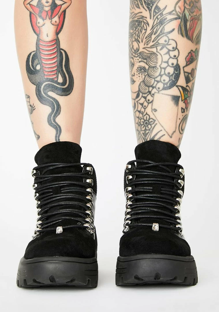 they better not start with you, boo. You donât got time for the drama in these baddie ankle boots that have a faux suede construction, thicc treaded soles and adjustable lace-ups closures.