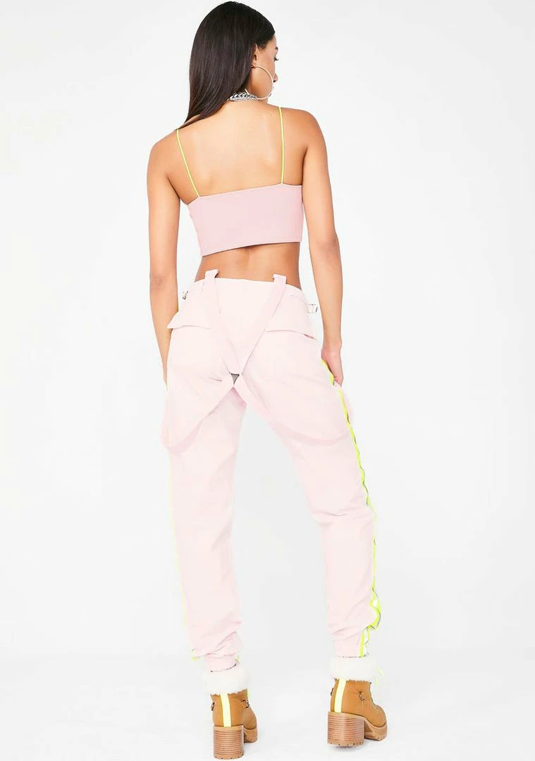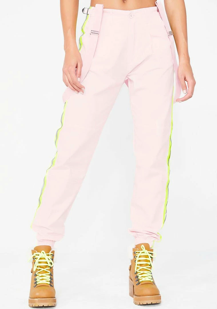 cuz you deserve nothinâ but the finer thangs babe! Stay sippinâ ya bubbly in these dope AF cargo pants that have detachable suspenders, adjustable side tabs, front N’ back pockets, and neon Nâ reflective side stripe accents.
