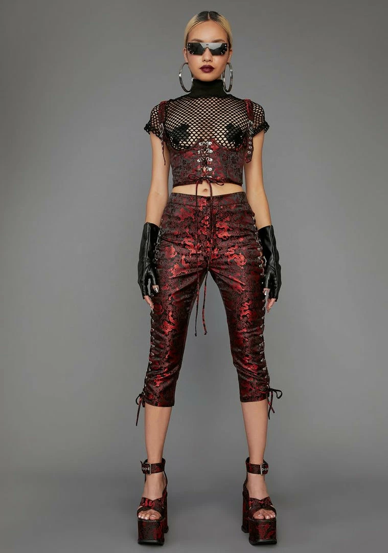 cuz youâre ready for anything. Maximize your exposure in this lace up corset that has adjustable utility buckle straps and corset piping.