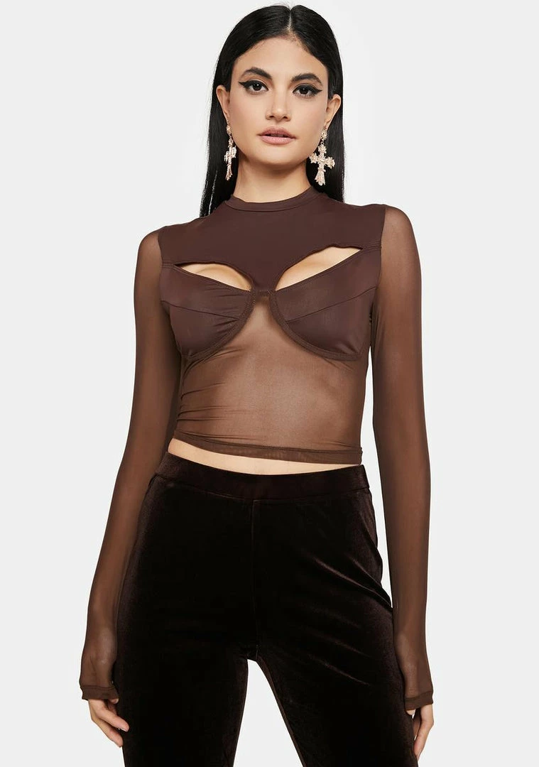 cuz you’re rising to the top, babe! This long sleeve top has a stretchy mesh construction, a cropped fit, and cut-outs on the best.