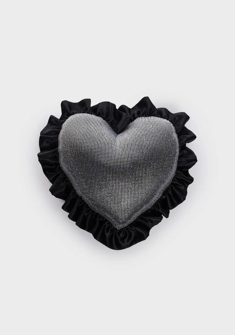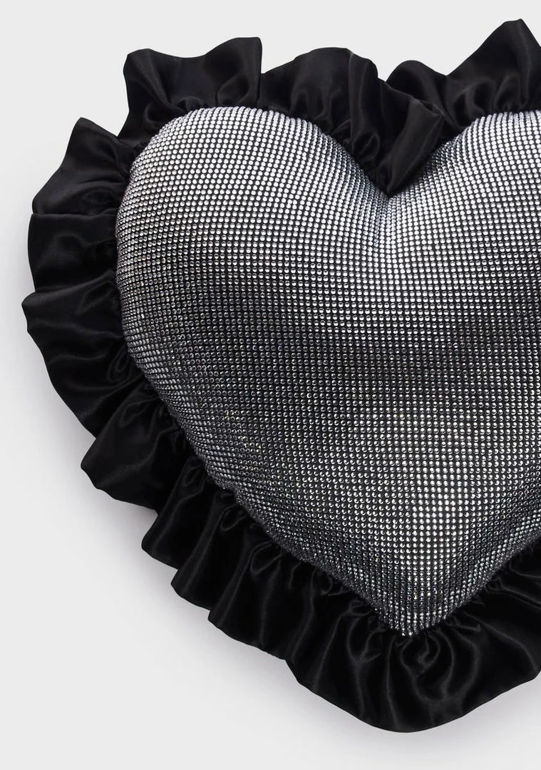 cuz bling has always been your thing. This heart-shaped pillow has rhinestones all over and satin ruffle trim.