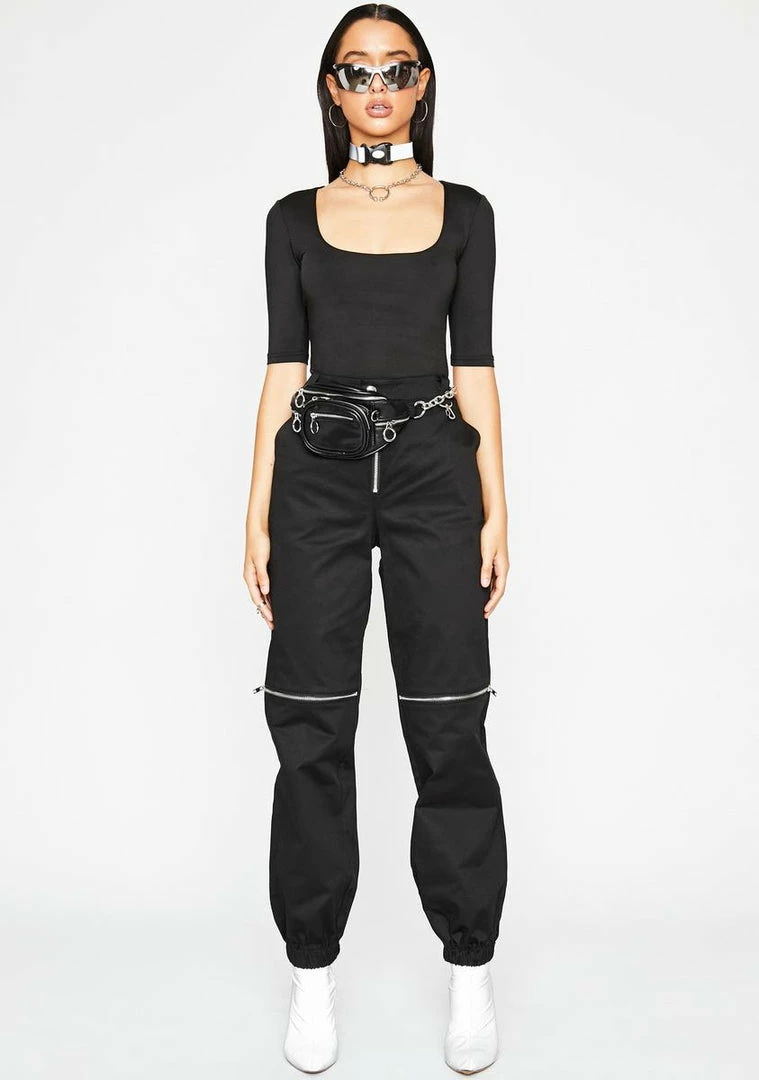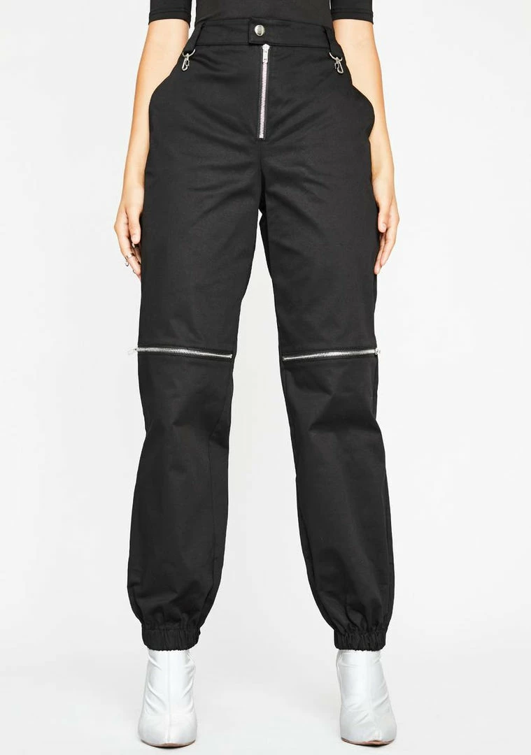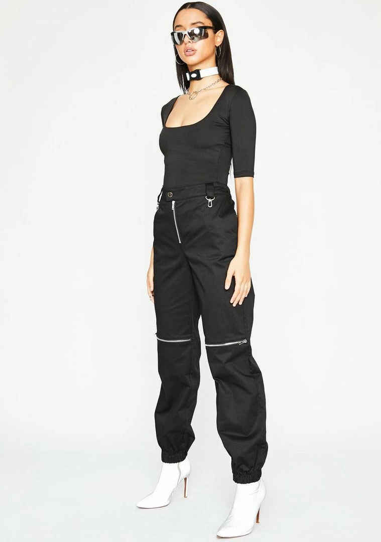 who the fuq she gonâ check?! Have âem pressed AF in these glamazon high waist pants that have button Nâ fly closures, chrome zip closures on the front Nâ back and banded ankles.