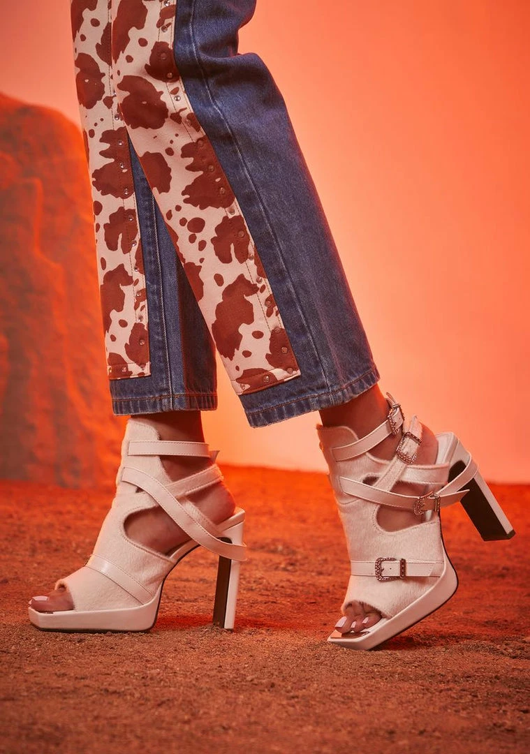 you take bad to a whole new level. These vegan leather mule heels have a strappy design with buckle closures, square peep toe fronts, and thin block heels.