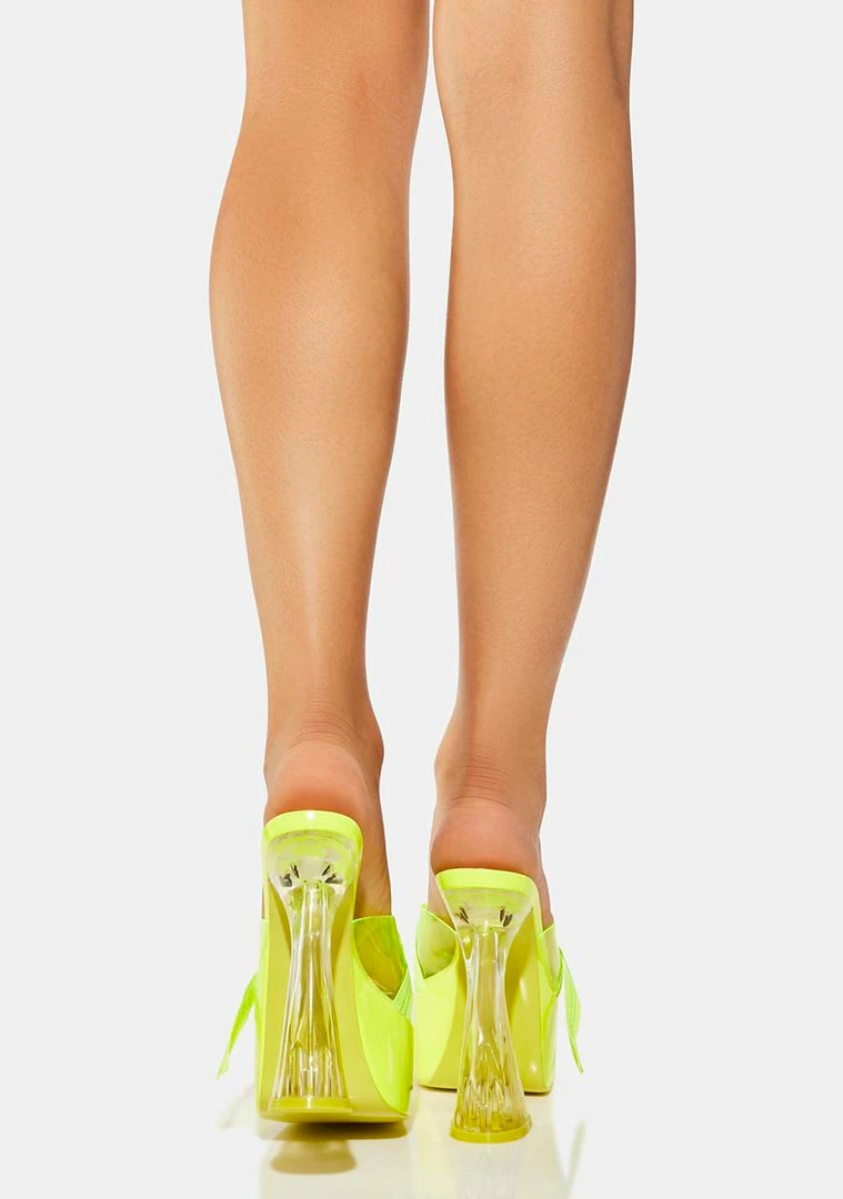 buckle up. These platforms come with a clear heel, clear upper strap, buckle strap detail, in a vinyl construction.