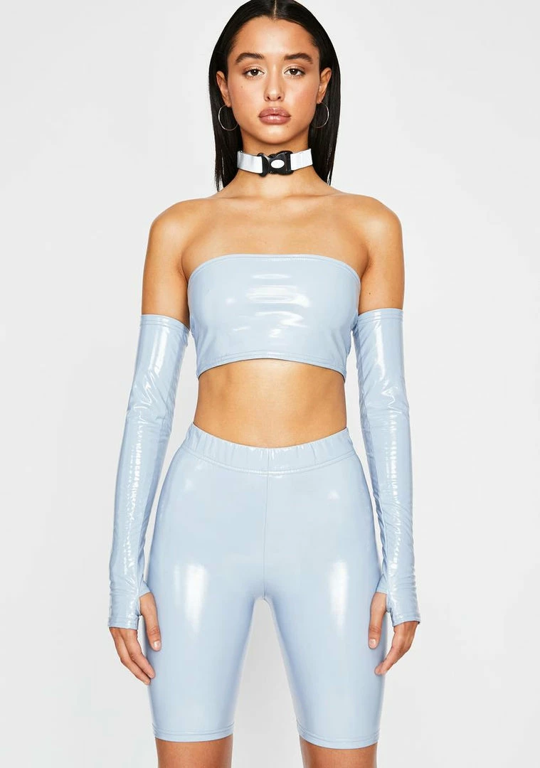 just statinâ the facts, babe. Youâre everybodyâs type in these high waist biker shorts that have a supa sleek PVC material, elastic waistband Nâ slim fit.