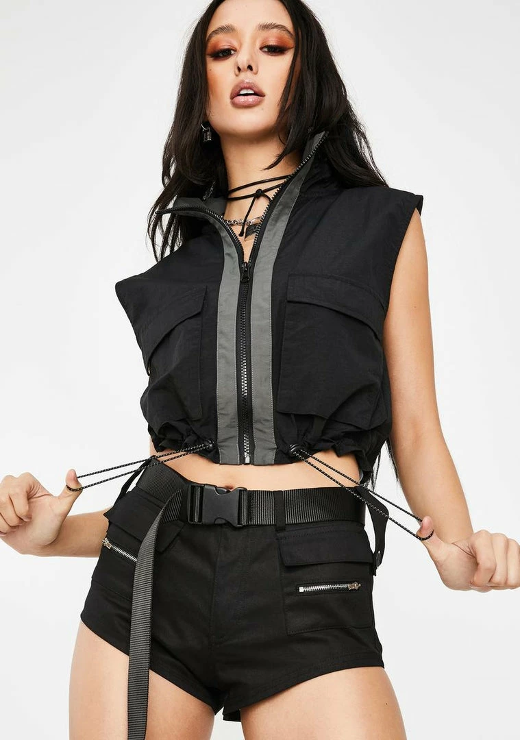 when ya got more designer fittings than you can count, boo. Your agentâs got ya on a tight schedule in these bad bish utility shorts that have front cargo pockets, a high waist fit, a button zip closure and come with a dope AF adjustable buckle belt.