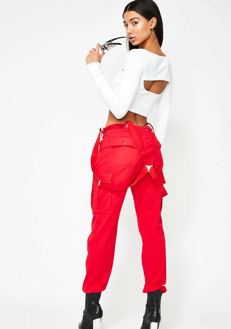 cuz youâre makinâ shmoney moves babe. Keep it litty in these dope cargo pants that have a relaxed fit, detachable suspenders, pockets on the front N’ sides, adjustable side straps and a zip fly closure.