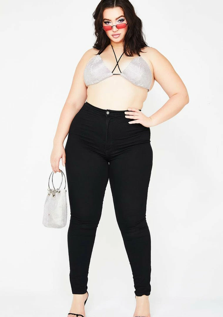 cuz ya future so bright ya carry ya own shade. Show up to show out in this anything but basic triangle bra that has a strappy front, glamour rhinestones all ova, Nâ back tie closures.