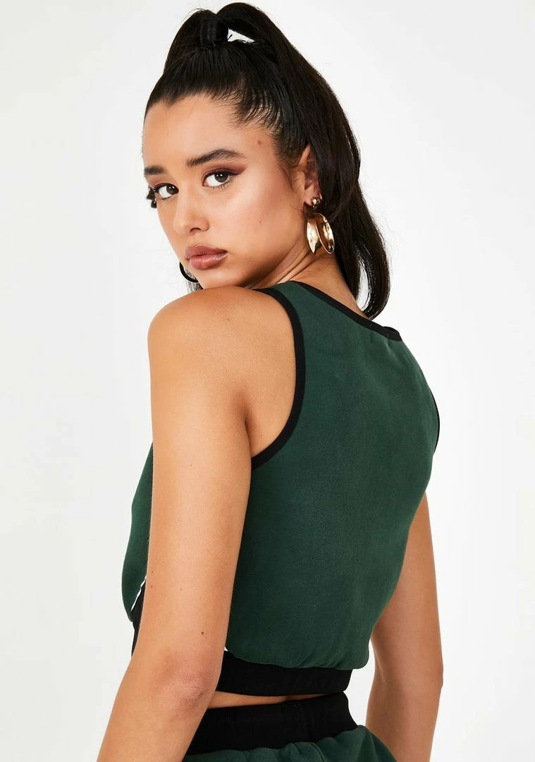 got ya that first-pick status, boo. Yer ballinâ TF out in this supa fly tank crop top that has fierce reflective piping, a scoop neckline Nâ adjustable drawstrings.