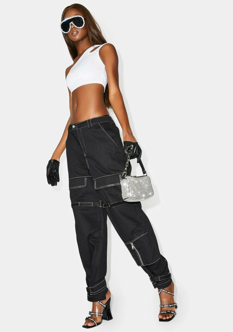 cuz u alwayz got ya girls with u bb! Roll deep lookinâ dope AF in these cargo pants with a straight leg fit and contrast stitching all ova.