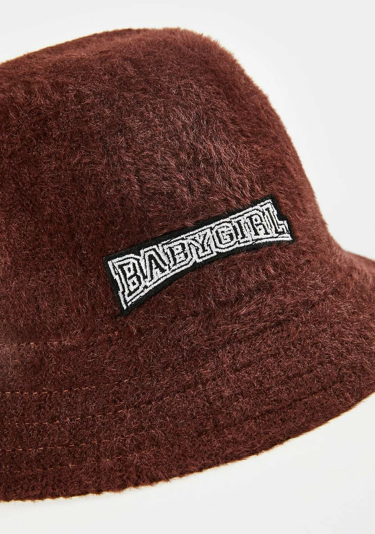 better luck next time, babe! This super 90’s bucket hat has a faux mohair construction and embroidered text on the front that says ‘BABYGIRL’.