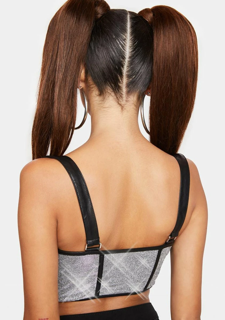 cuz you get whatever you wish for, babe! This glitter underbust corset has a contrast boning design, a front zip closure, and adjustable buckle straps.