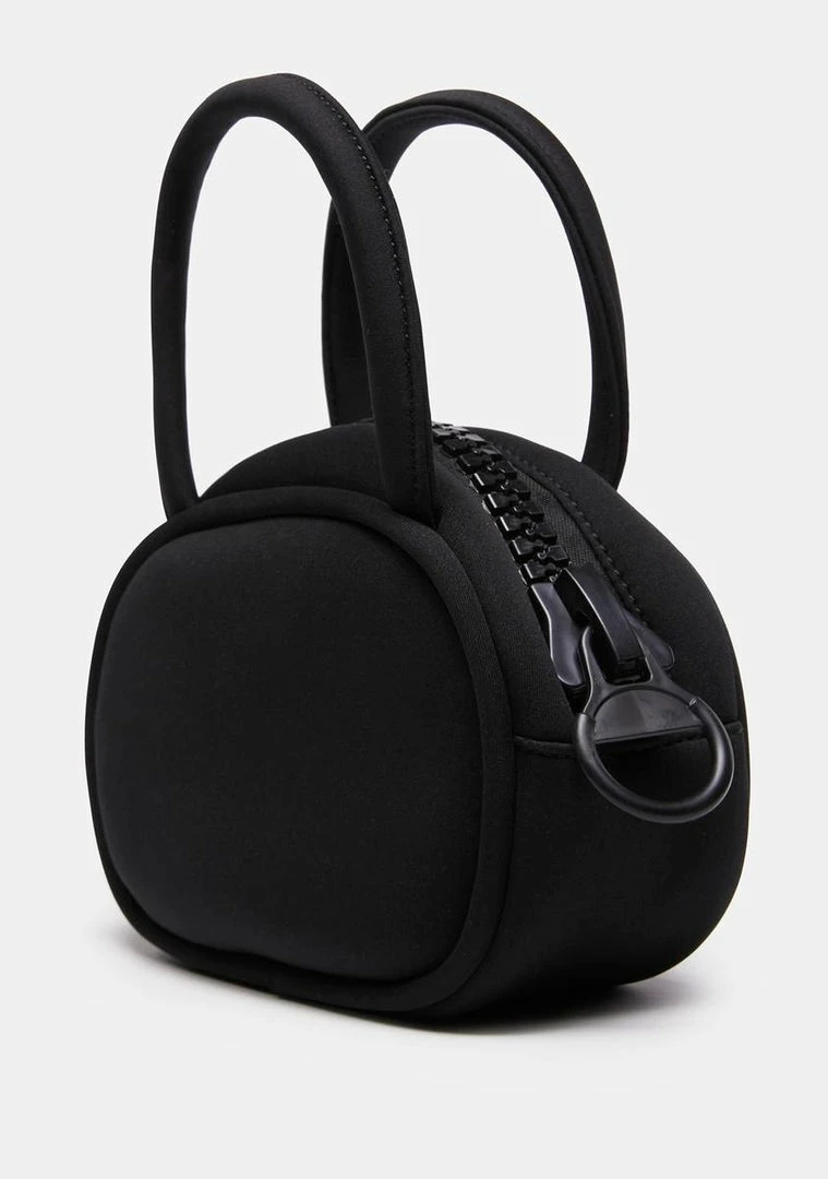 cuz the world revolves around you. This handbag has a thick neoprene construction, an oversized top zip closure, and an interior zip storage pocket.