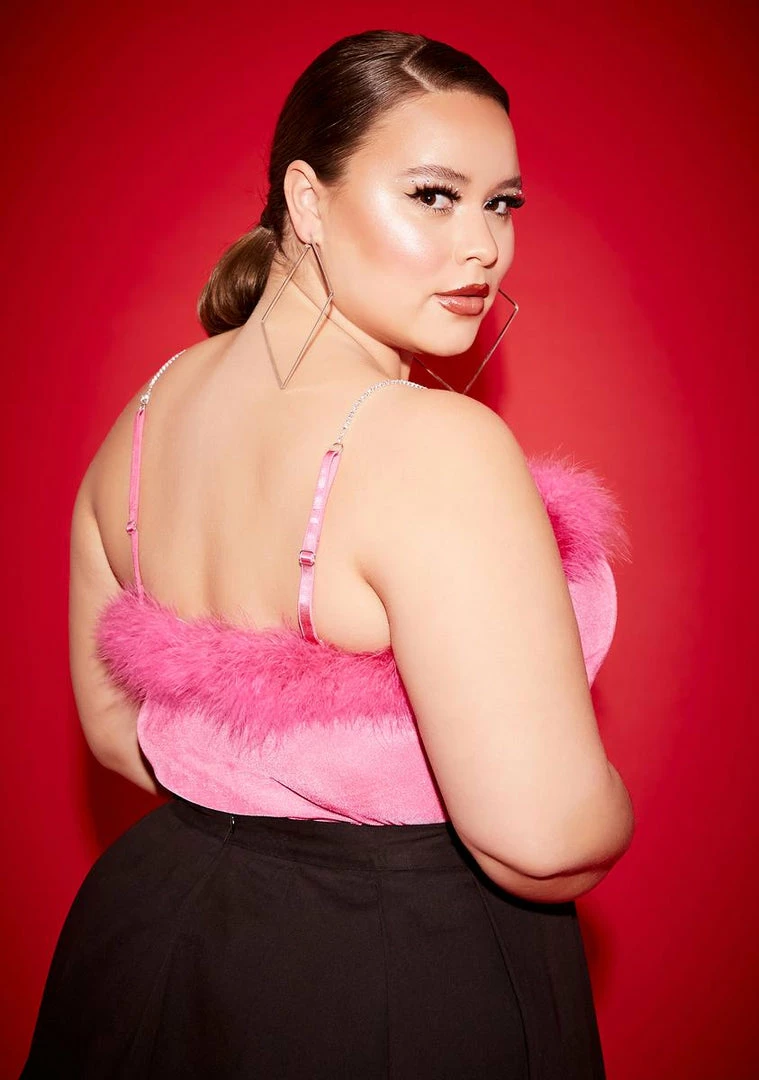 cuz you bring all the boys to the yard. This tank top has a boa trim.