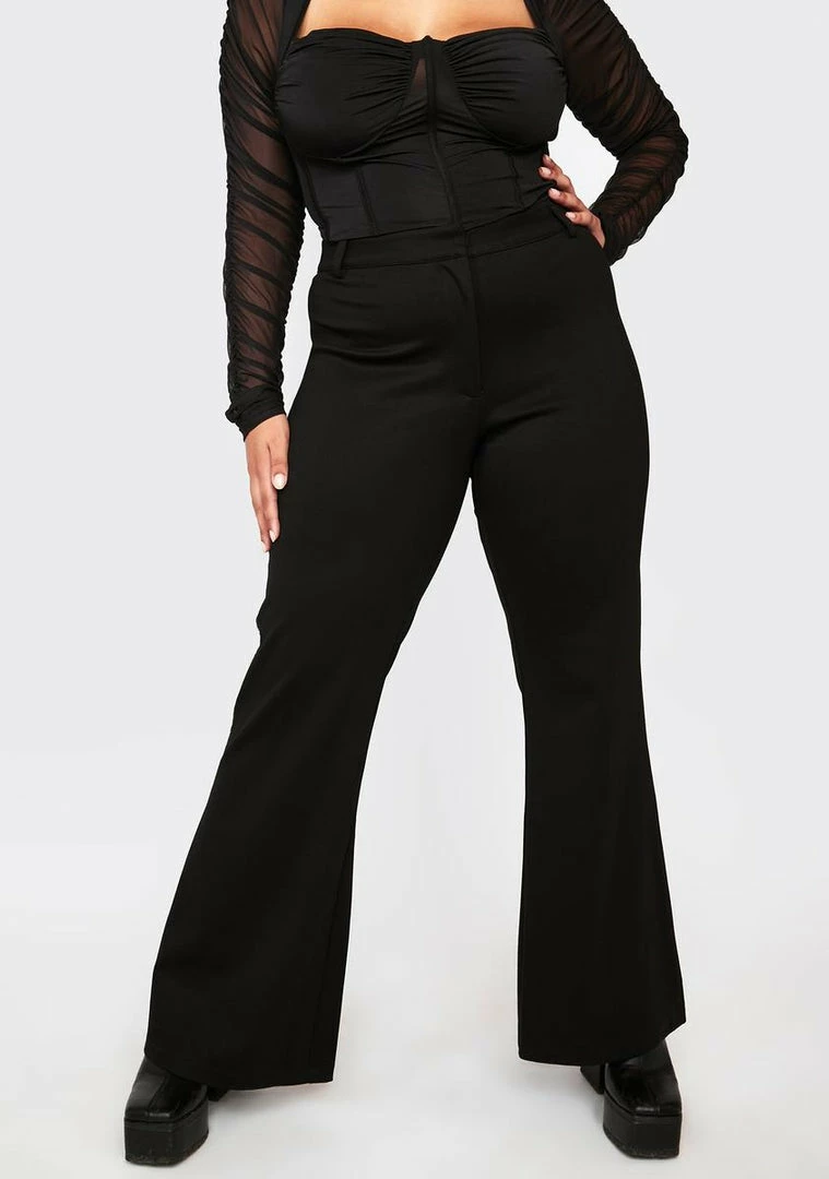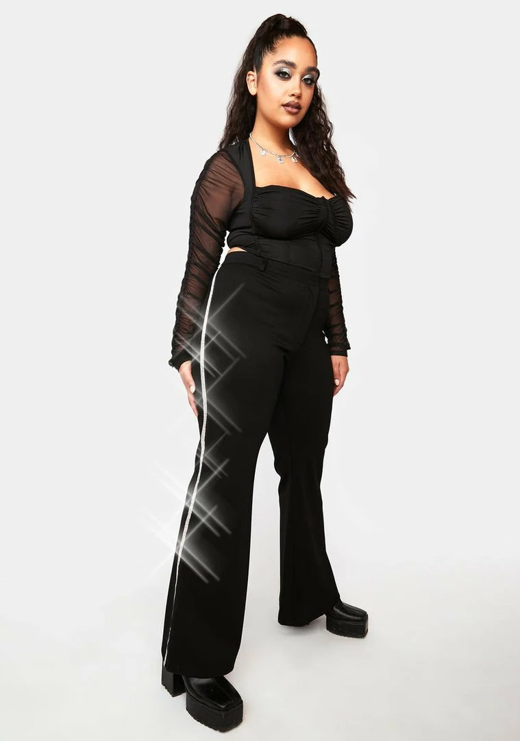 cuz you make an icy entrance babe! Give them a cool shiver in these high waist pants which have a flare leg and a rhinestone trim.