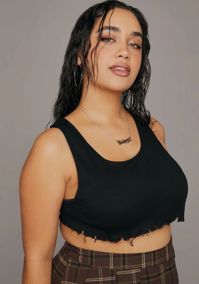 you make the rules just to break ’em. This tank top has a scoop neckline, a distressed frayed hem, and a super cropped fit.