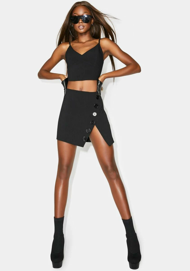 cuz u know how to get what ya want bb! Tip the scales in your favor lookinâ like a BOSS bish wearing this asymmetrical mini skirt with button details and a mid rise fit.