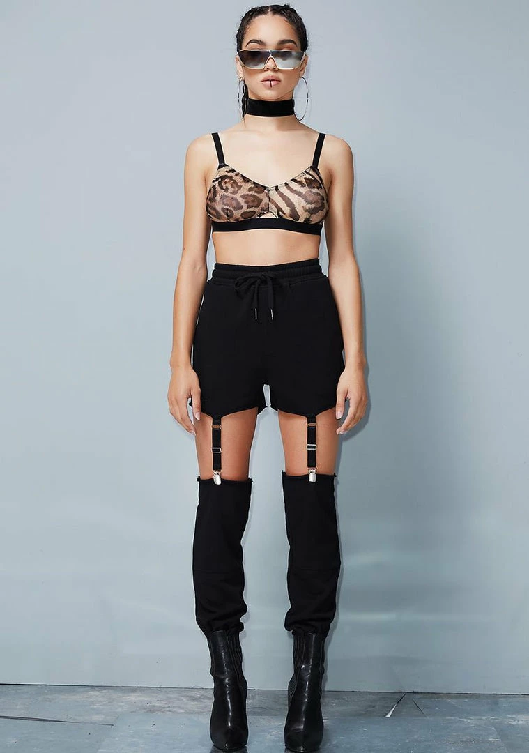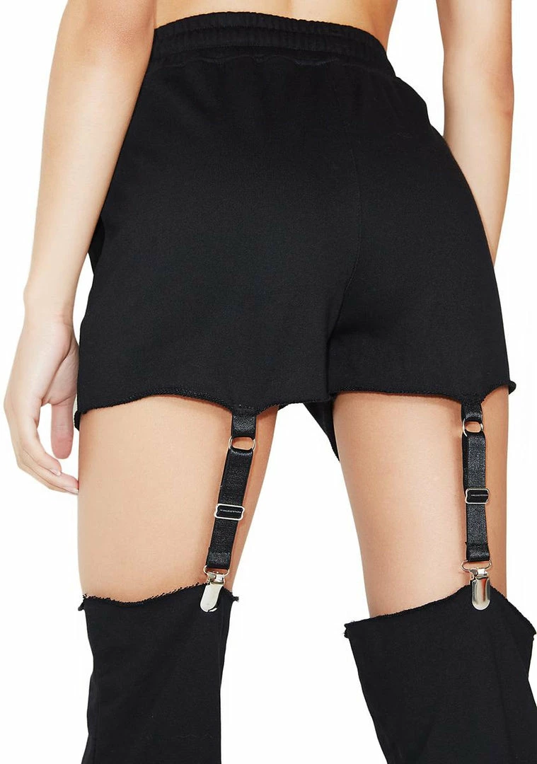 are ya feelinâ lucky? These dope af sweatpants have detached legs with garter straps, in-seam pockets and an elastic drawstring waist.