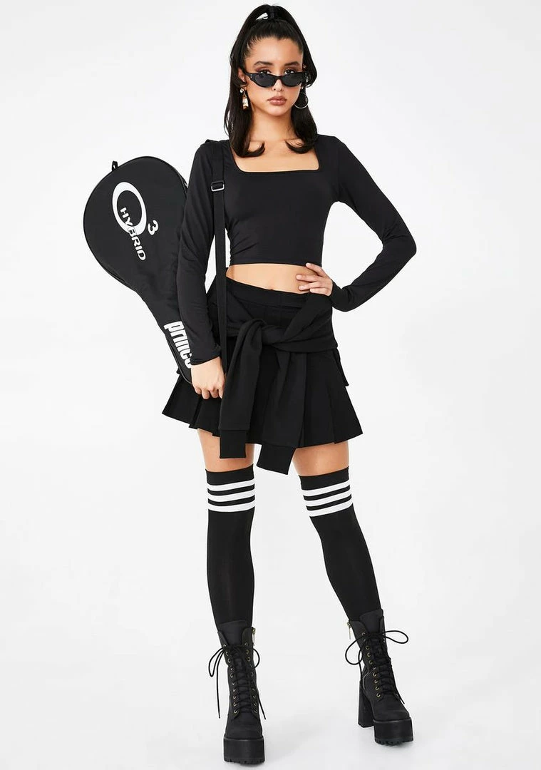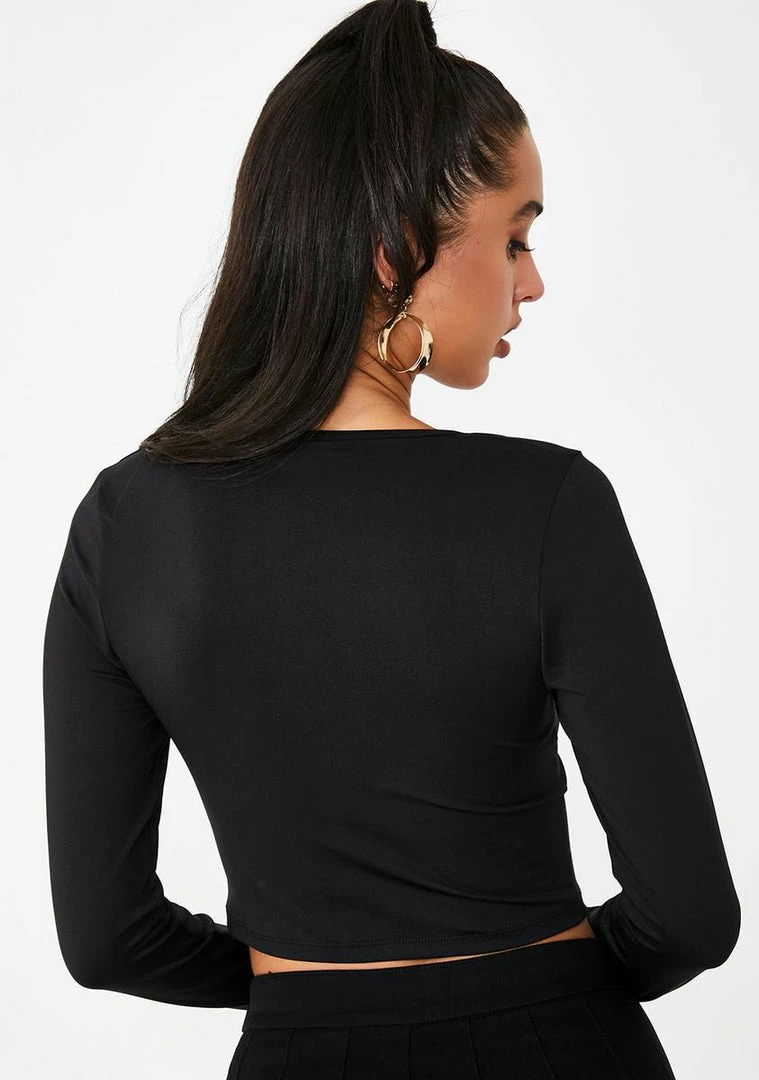 got ya askinâ for receipts, bish! Make âem spill the tea in this hot AF long sleeve top that has a wide square neckline Nâ stretchy cropped fit.