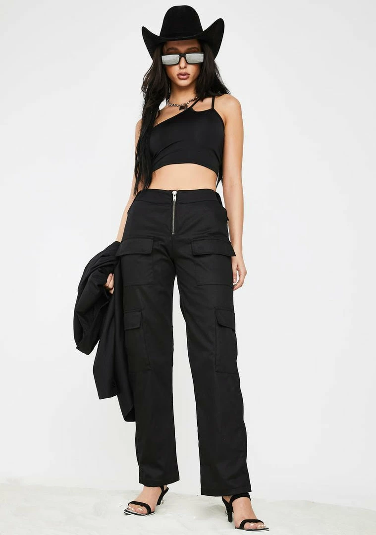 cuz you donât got time for business when youâre off the clock, babe. Have their people call your people in this hot AF tank top that has a one-shoulder design with adjustable cami straps and a cropped fit.