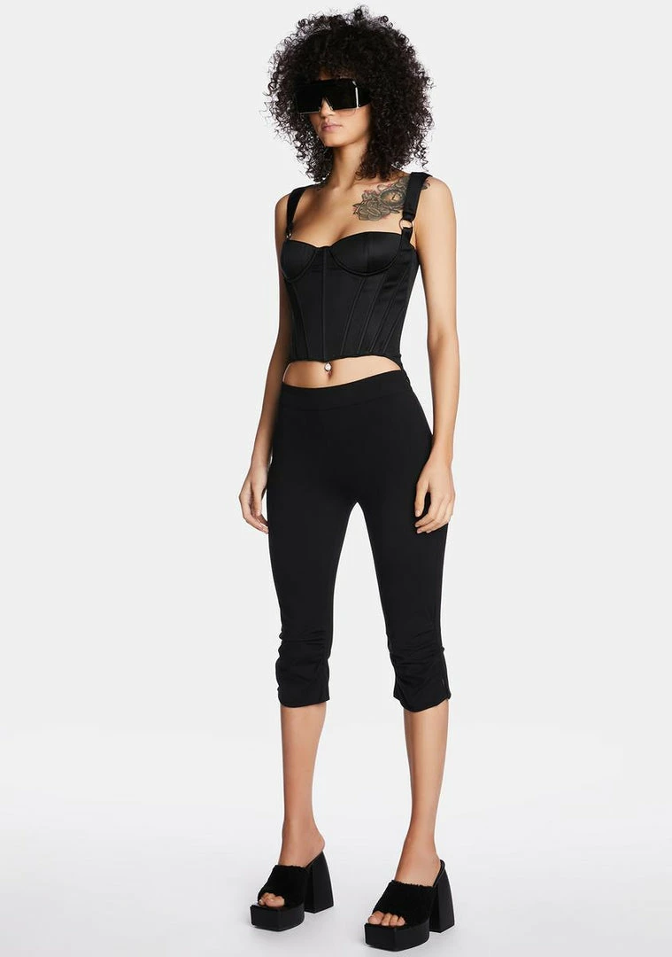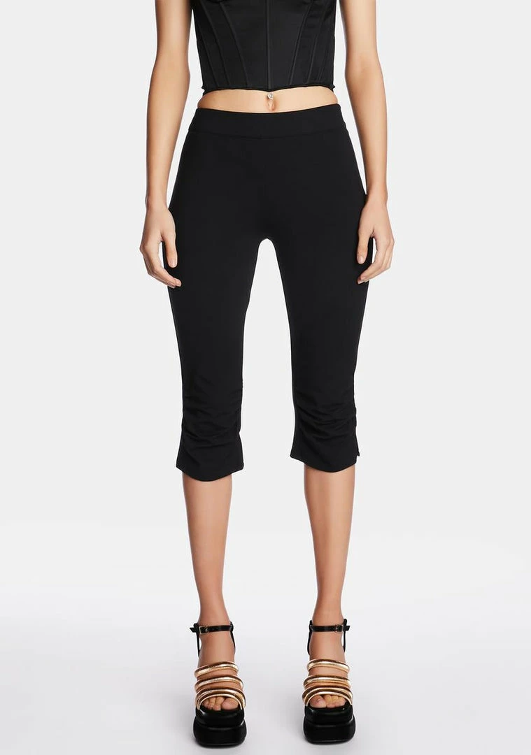 life goes on. These high-waisted pedal pusher pants have ruched legs, a side zip closure, and a bodycon fit.