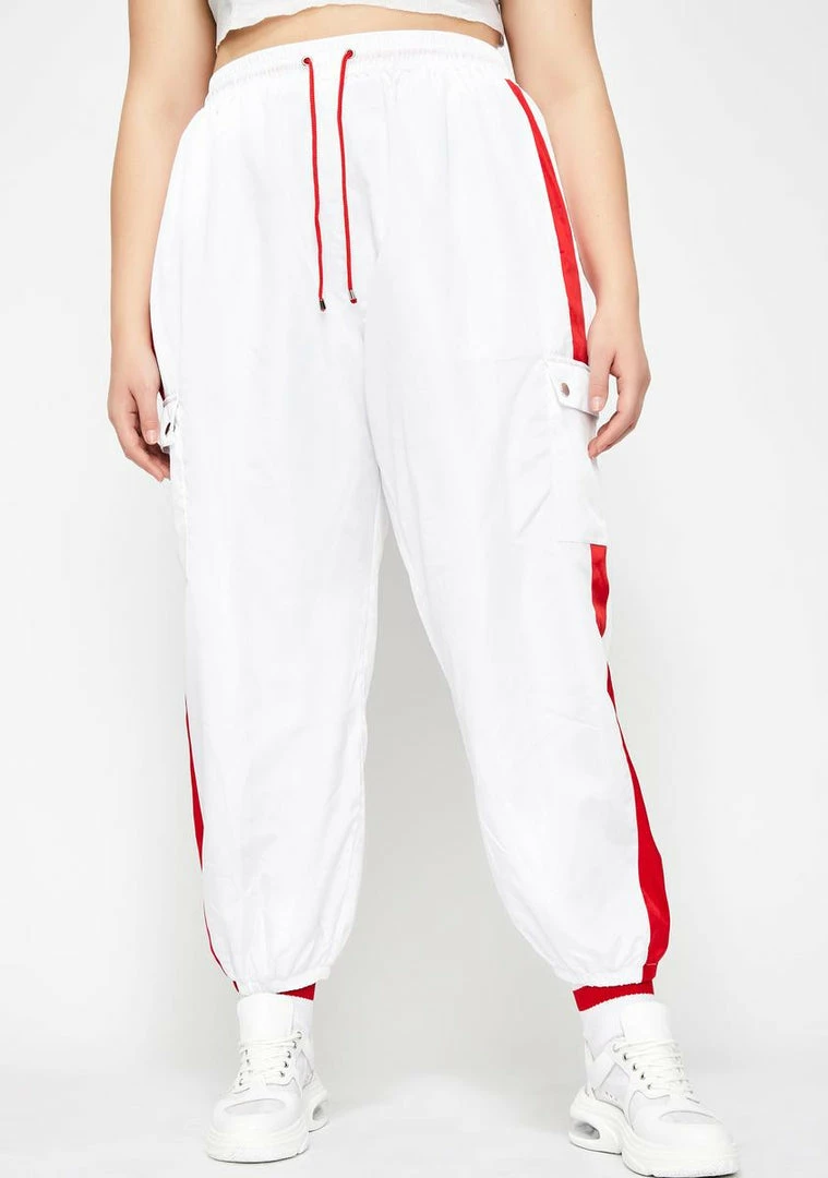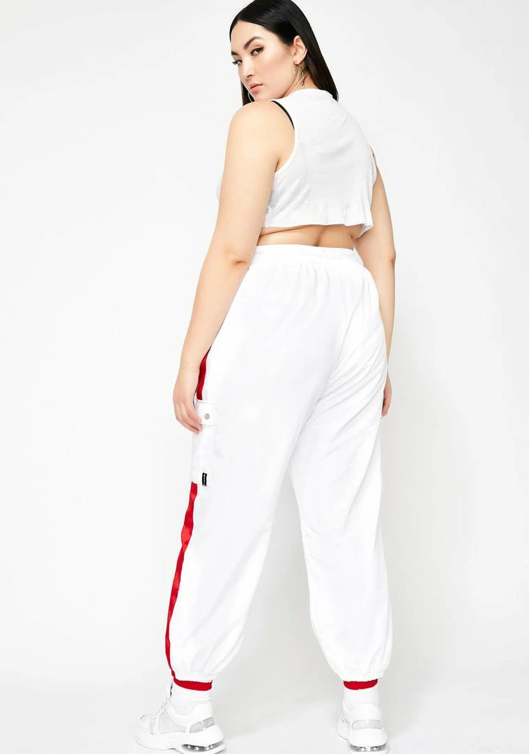 cuz ya see no competition. Ball out in these flawless high waist joggers that have a drawstring waistline, utility side pockets, and too hott side stripes.