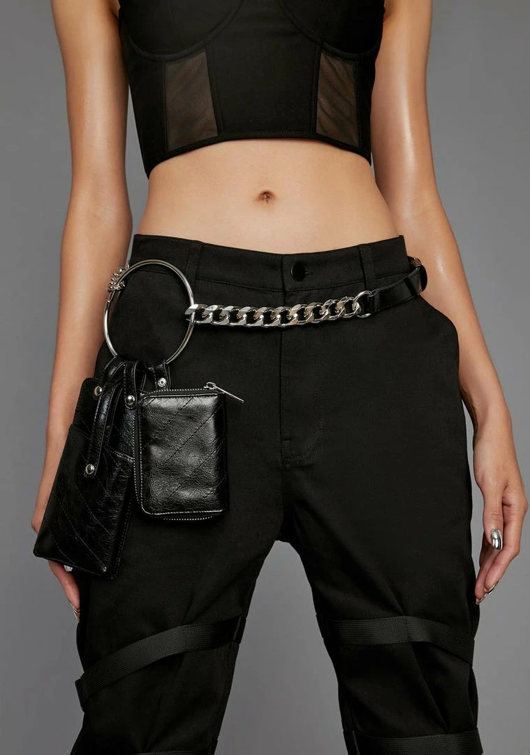 because you’re fearless.Take on the world with harness bag that has chain crossbody strap, o-ring detailing and two pouches.