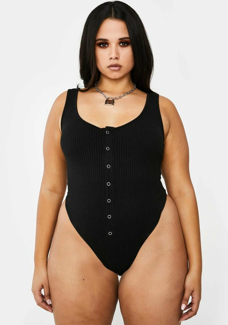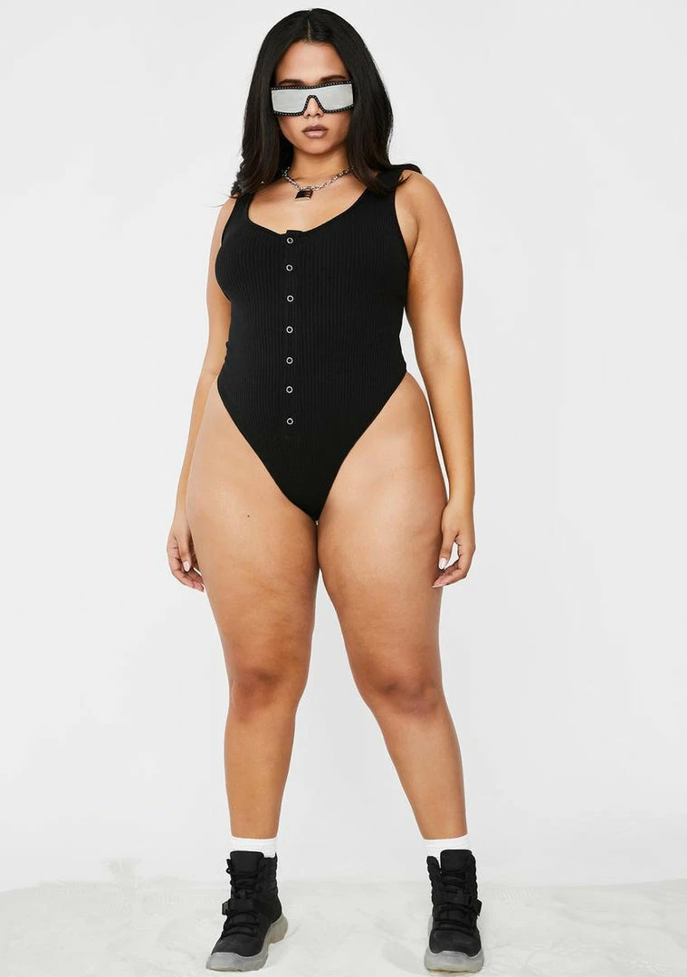 gotcha lewkinâ good from every angle, bae. Tell ’em every side is ur good side in this flawless tank bodysuit that has a scoop neckline, supa soft ribbed henley material, thong back Nâ front snap button closures.