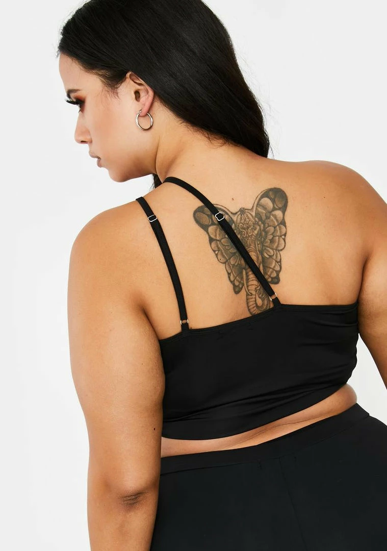 cuz you donât got time for business when youâre off the clock, babe. Have their people call your people in this hot AF tank top that has a one-shoulder design with adjustable cami straps and a cropped fit.