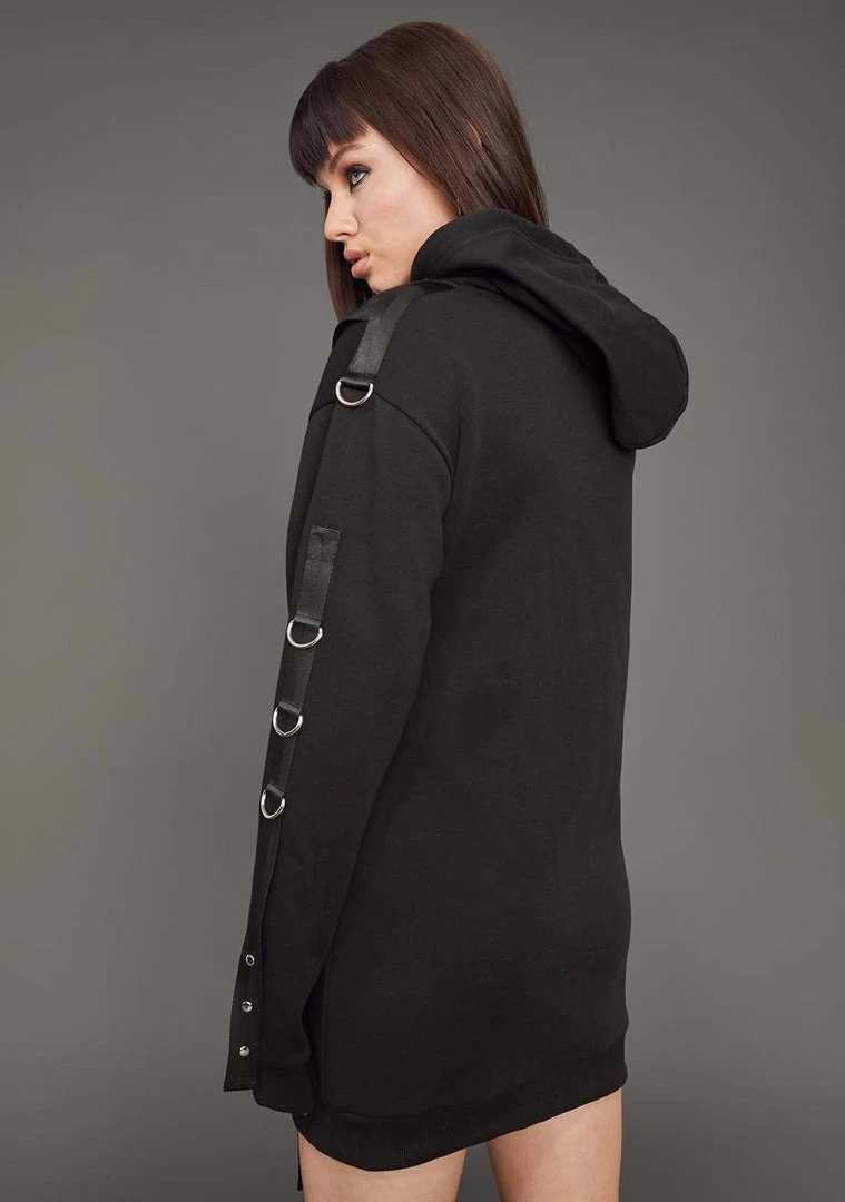 cuz you play the game well, babe. This badass hoodie has drawstring pulls, a relaxed fit, and a strappy harness design with D-ring hardware all over.