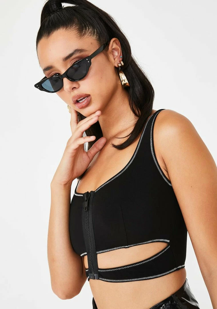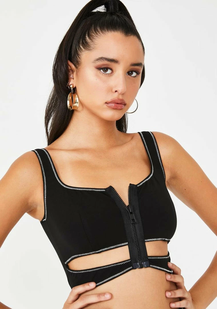 will have ya gettinâ more like than King Kylie. Takover their timelines in this risque lil tank crop top that has a contrasting icy trim, scoop neckline, xxxposed front zip closure Nâ xxxplicit underboob design.