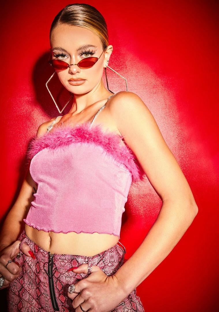 cuz you bring all the boys to the yard. This tank top has a boa trim.