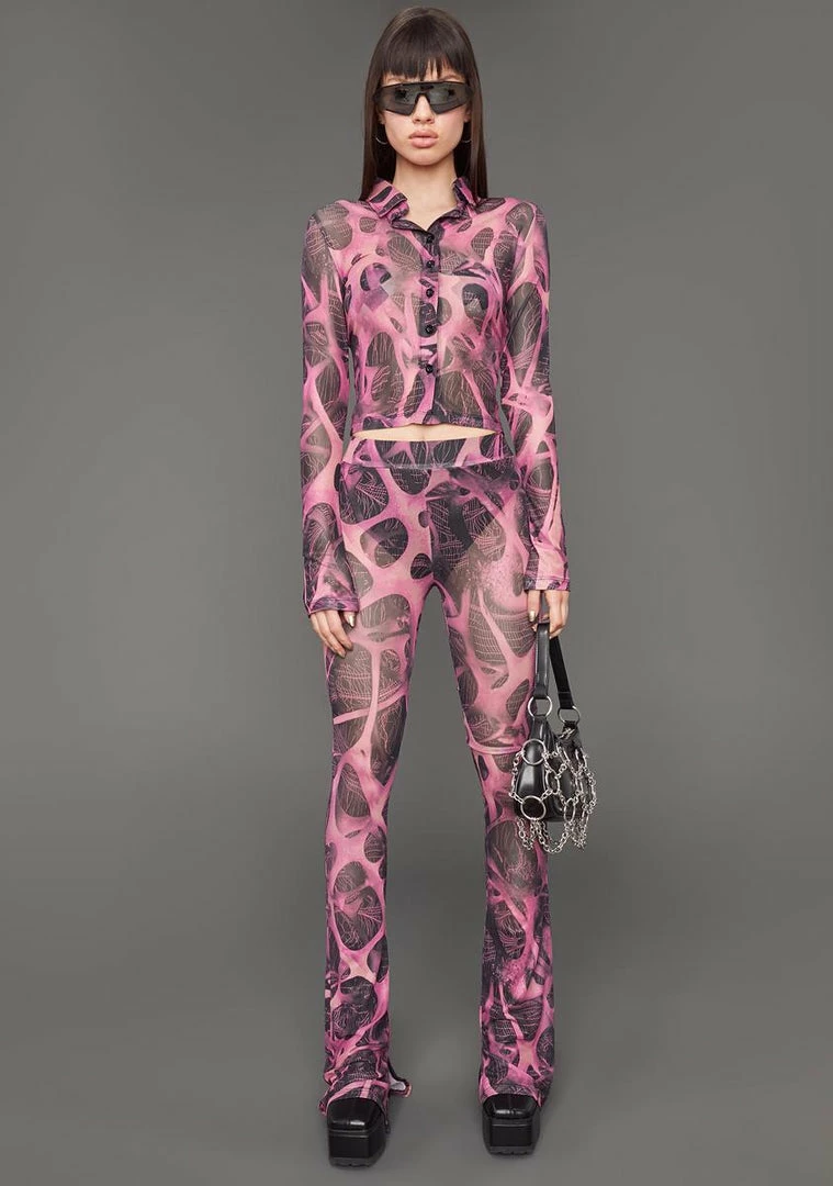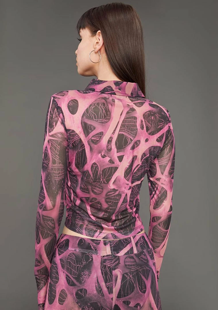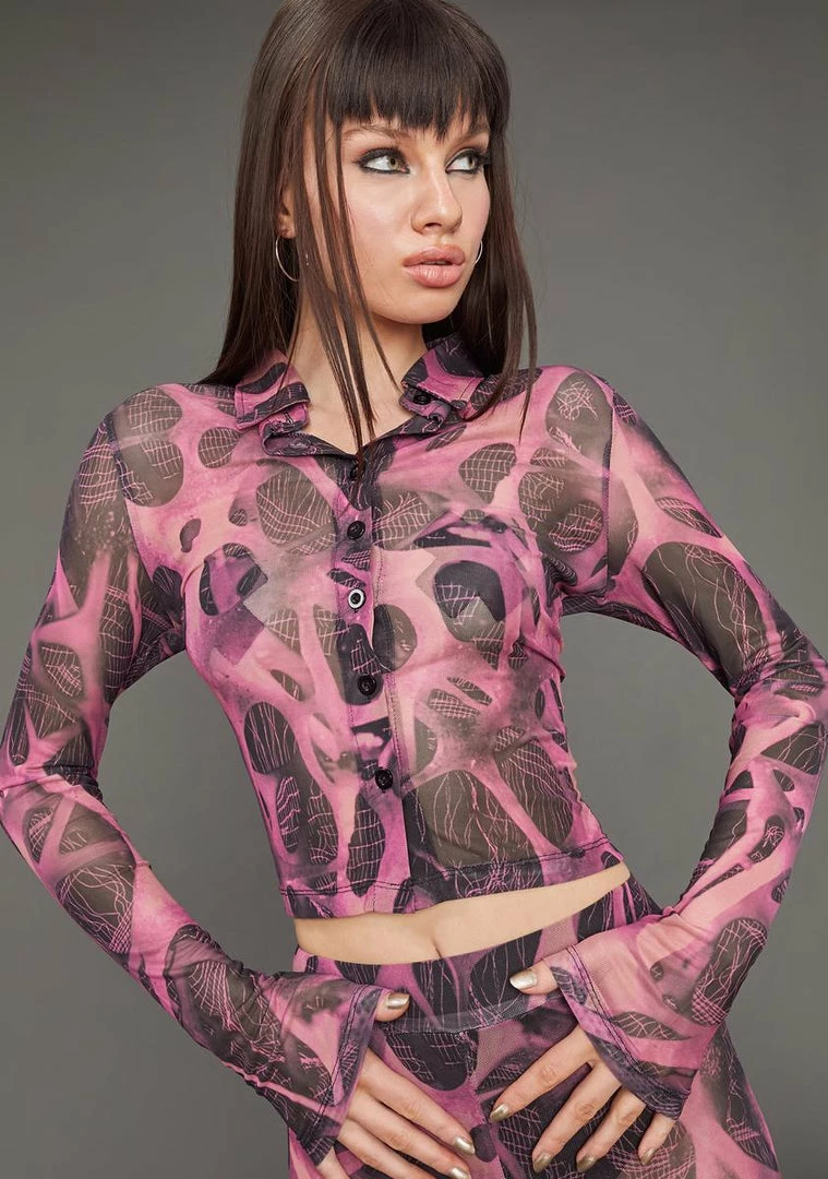 cuz they know you hustle hard. This long sleeve mesh button up shirt has a collared neckline, a cropped fit and a microscopic print all over.