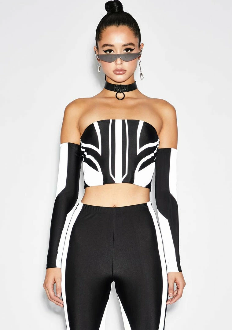 cuz no one stops ya shine, babygirl! You got all the right movez in this off the shoulder crop top that has a supa stretchy material, luscious long sleeves Nâ reflective panels all ova.