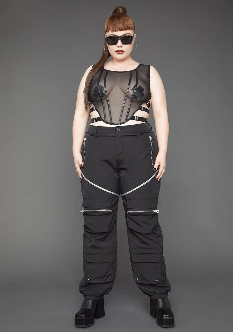 cuz itâs access denied if theyâre not on your list. This strappy corset top has a mesh construction, a cropped fit, a scoop neckline and a back zip closure.
